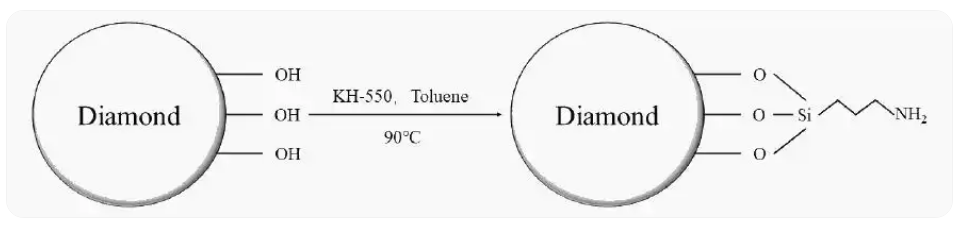 (1) Silane Coupling Agent. Synthetic diamonds produced by chemical vapor deposition still retain organic groups such as hydroxyl and carboxyl groups. One end of the silane coupling agent can react and bond with these groups, while the other end can react with the polymer to form chemical bonds, thereby tightly binding the diamond to the polymer matrix and improving its interfacial interaction.