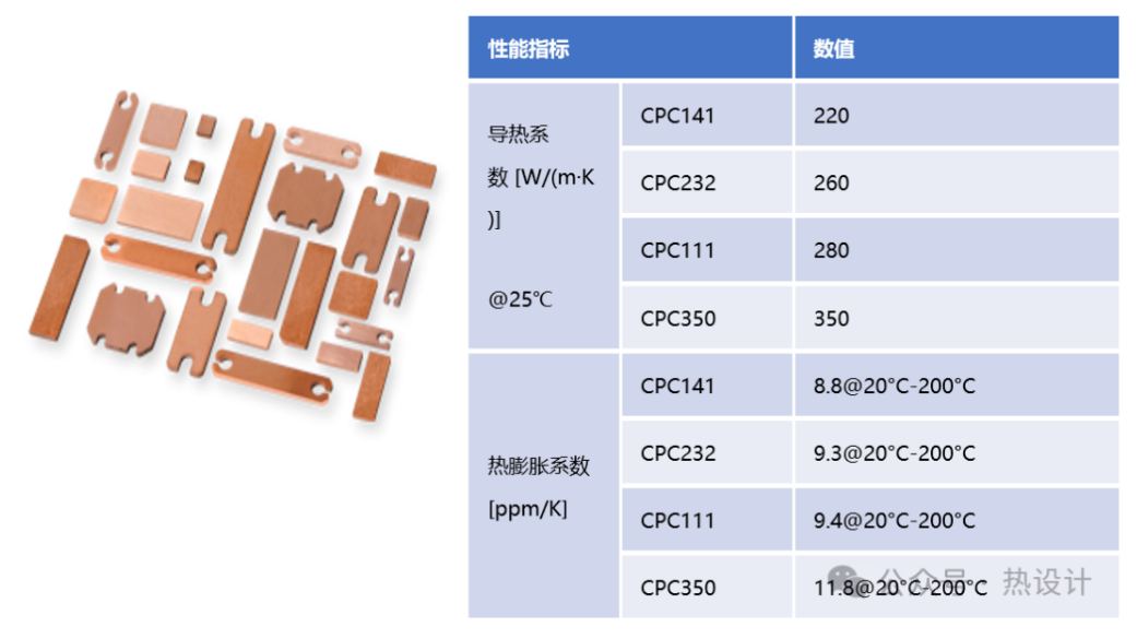 CPC material consists of three layers: the middle layer is a molybdenum-copper alloy (MoCu), and the two outer layers are pure copper (Cu).