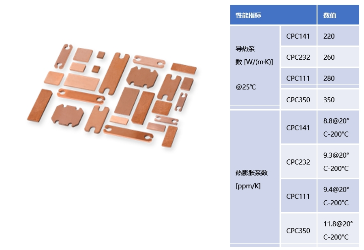 Packaging substrate: CPC material is commonly used as a packaging substrate in chip packaging due to its high thermal conductivity (such as a thermal conductivity coefficient of up to 350W/m · K), which effectively conducts out the heat generated by the chip and reduces its operating temperature.